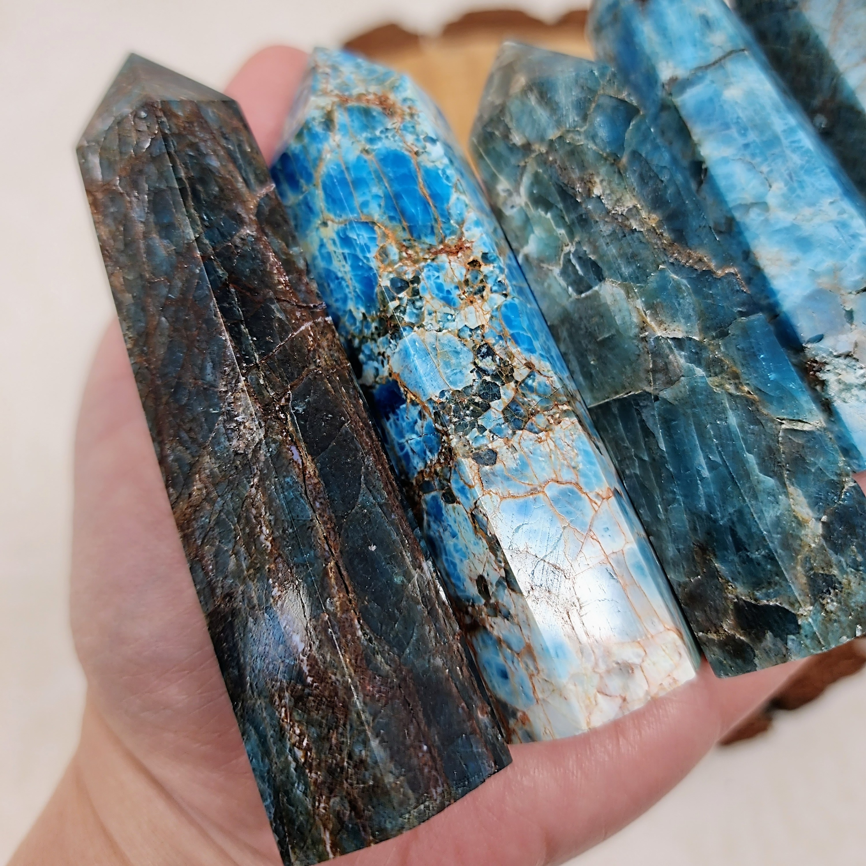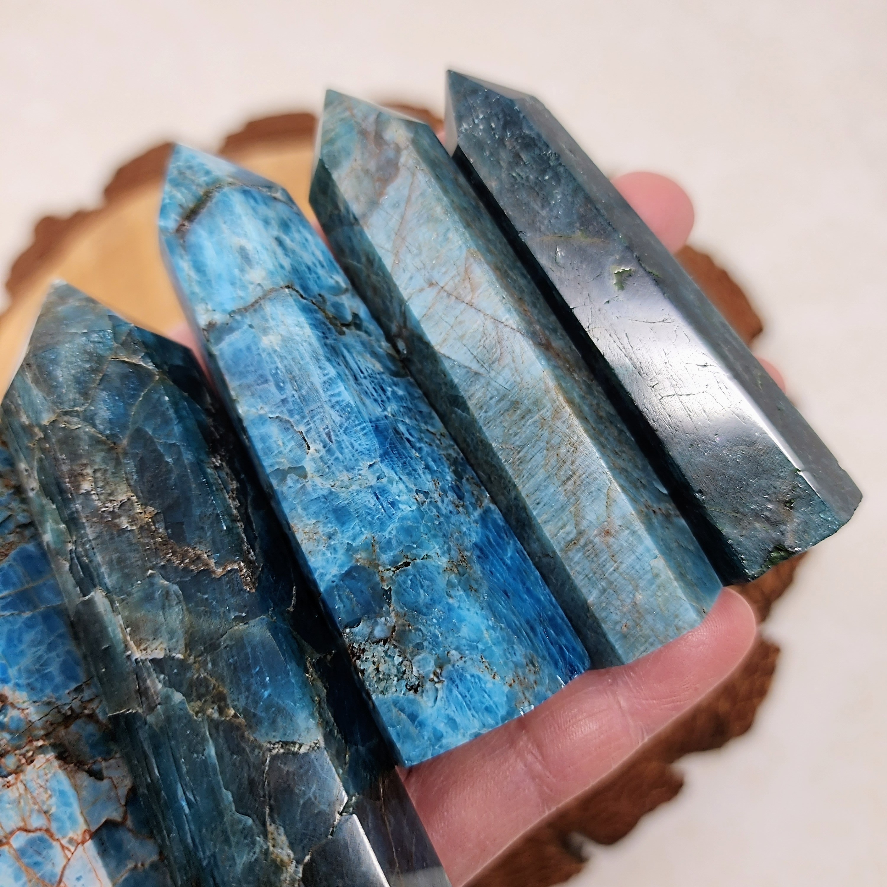 Apatite is a dual-action stone, known for its positive use of personal power to achieve goals. It clears away confusion, apathy or negativity, then stimulates the intellect to expand knowledge and truth. It is a Stone of Manifestation, promoting a humanitarian outlook and service to others. Blue Apatite is a motivational stone, promoting independence and ambitiousness.