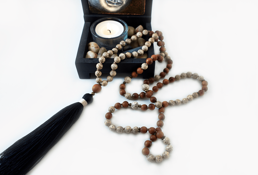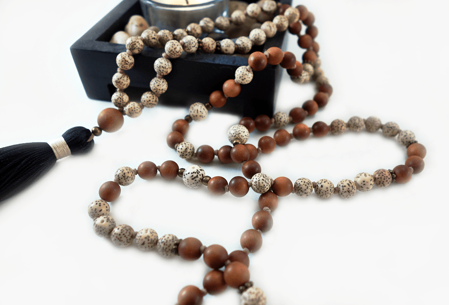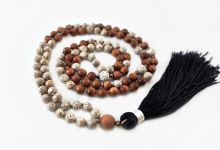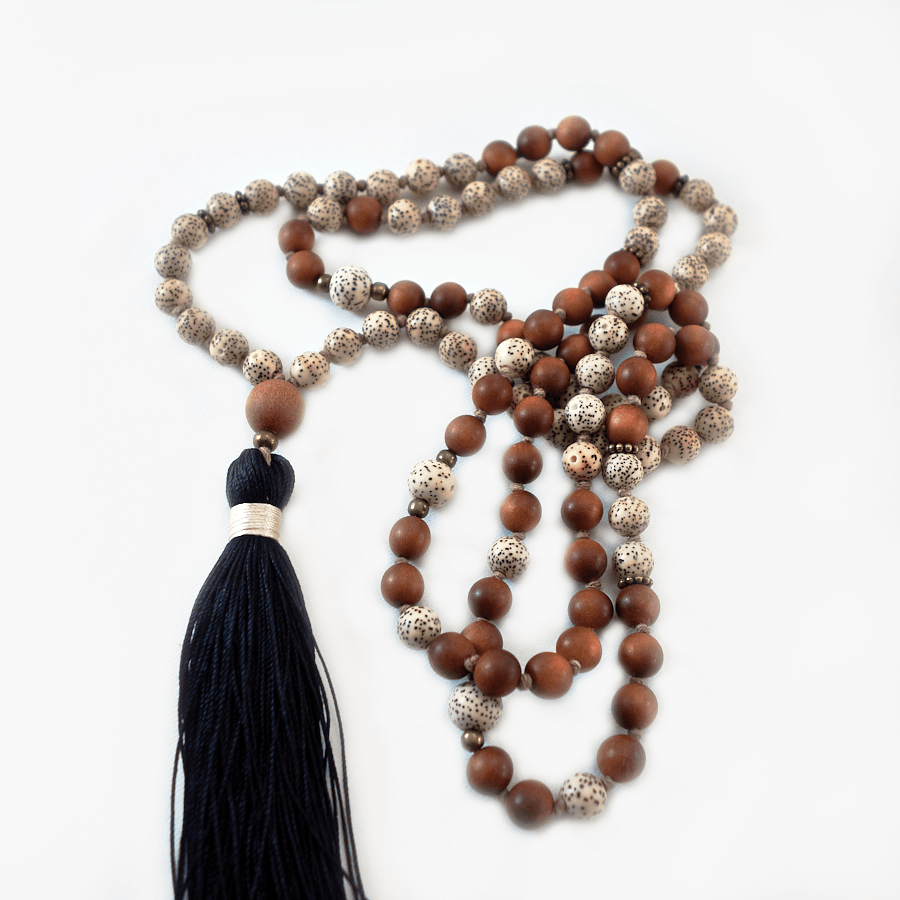 Knotted Natural Sandalwood & Starmoon Bodhi Mala Necklace